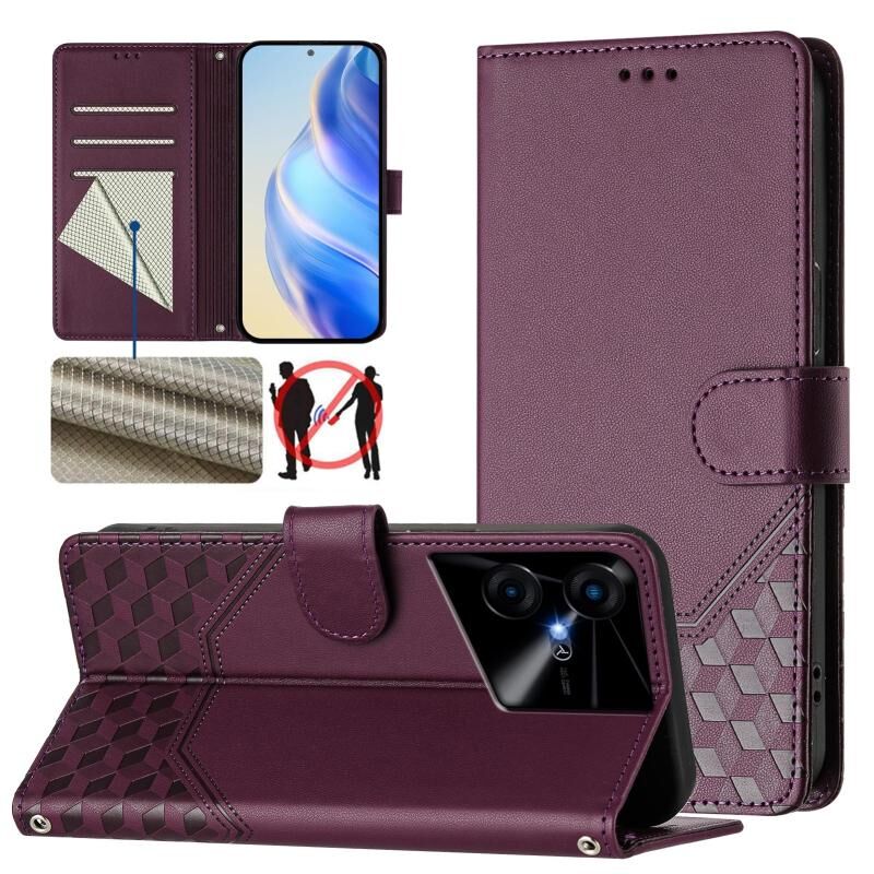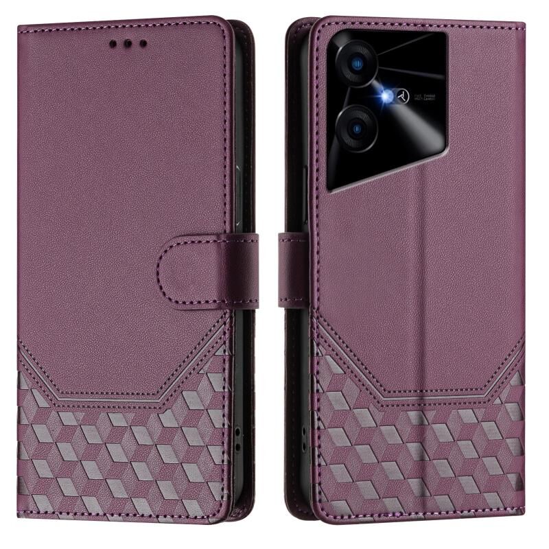 Για Tecno Pova Neo 3 κηρήθρα ανάγλυφη RFID δερμάτινη θήκη τηλεφώνου (Violet)
