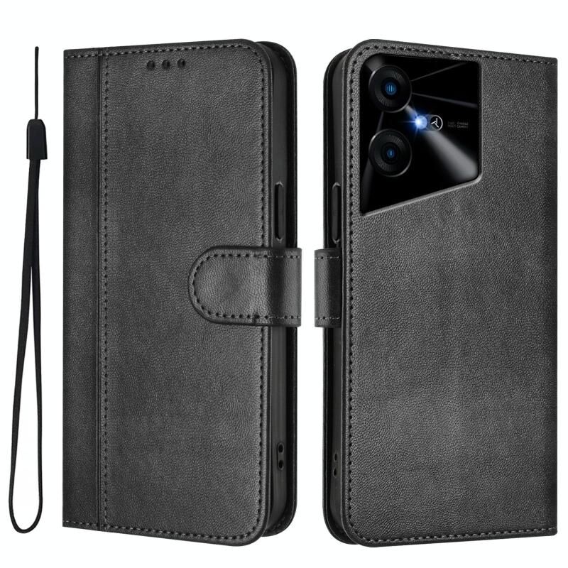 For Tecno Pova Neo 3 Line Splicing Buckle Retro Leather Phone Case(Black)