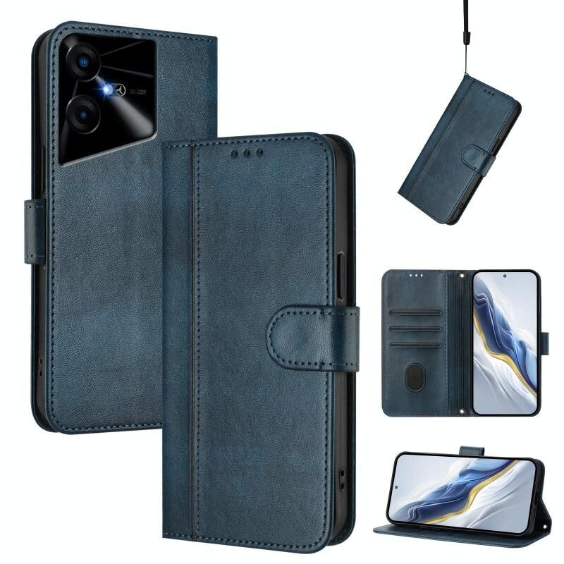 For Tecno Pova Neo 3 Line Splicing Buckle Retro Leather Phone Case(Dark Blue)