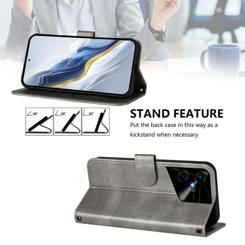 Θήκη τηλεφώνου Tecno Pova Neo 3 με ραφές, αγκράφα και δέρμα retro (Μαύρο)