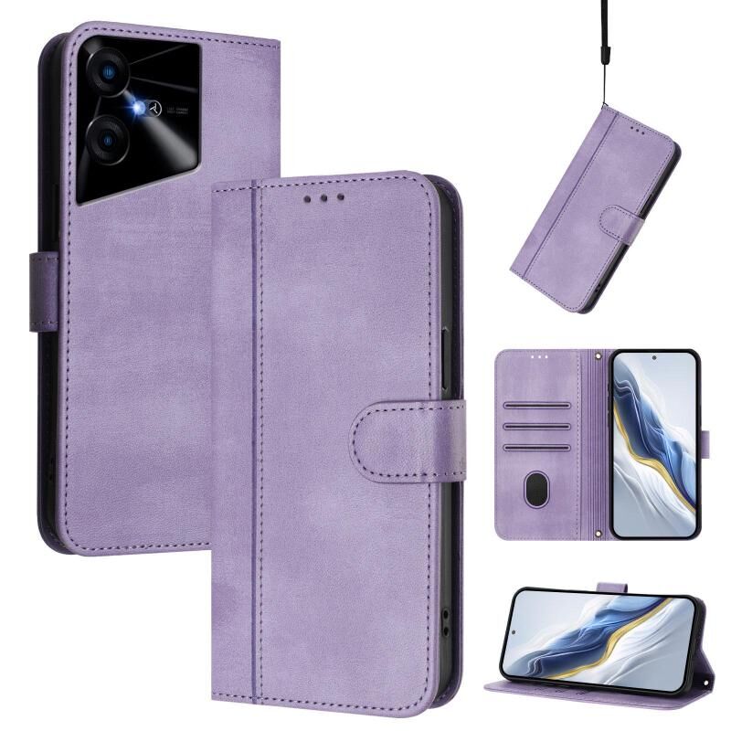 For Tecno Pova Neo 3 Line Splicing Buckle Retro Leather Phone Case(Purple)
