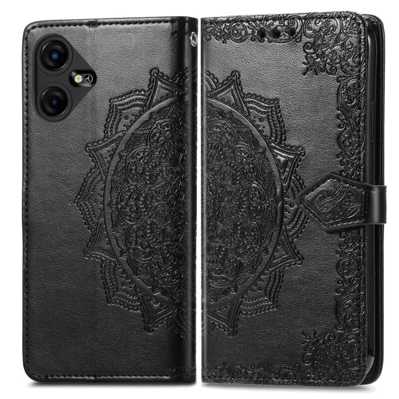 Για Tecno Pova Neo 3 Mandala λουλούδι ανάγλυφο δερμάτινη θήκη τηλεφώνου (μαύρο)