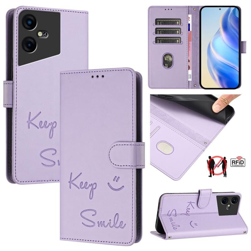 For Tecno Pova Neo 3 Smile Embossing RFID Leather Phone Case(Light Purple)