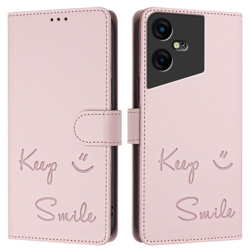For Tecno Pova Neo 3 Smile Embossing RFID Leather Phone Case(Pink)