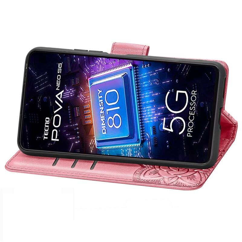 Θήκη τηλεφώνου Tecno Pova Neo 5G Butterfly Love Flower Embossed Leather (Χρυσό Ρόδι)