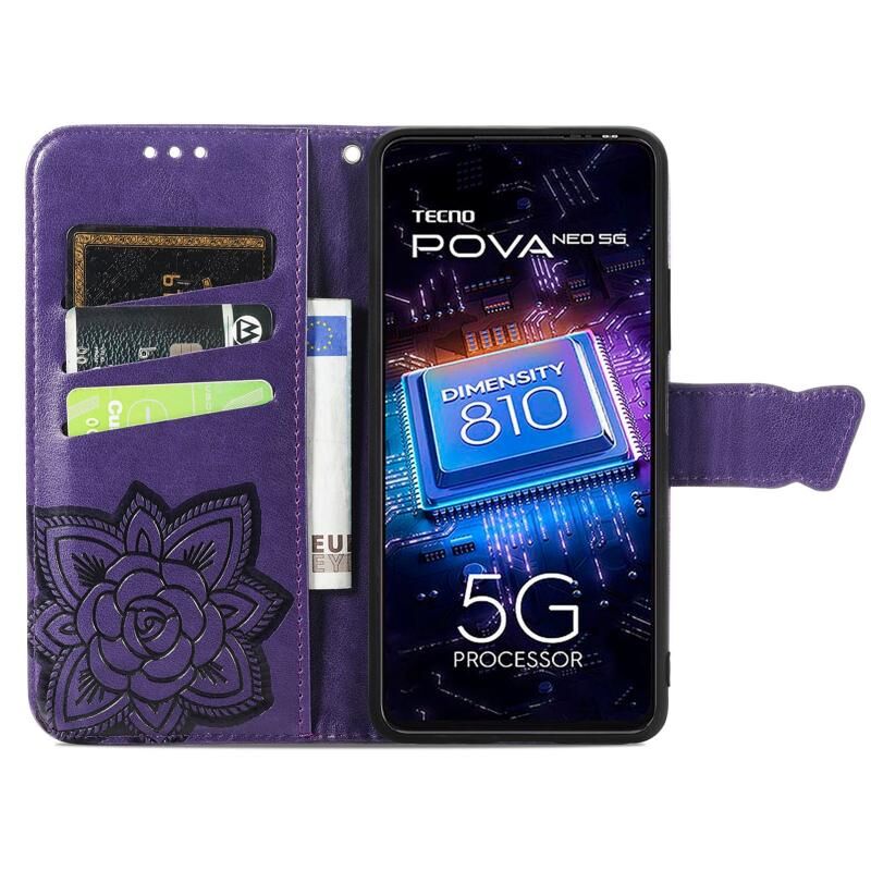 Θήκη τηλεφώνου Tecno Pova Neo 5G Butterfly Love Flower Embossed Leather (Χρυσό Ρόδι)