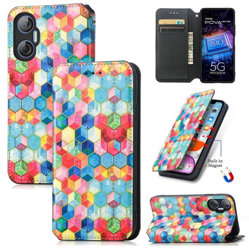 Θήκη για Tecno Pova Neo 5G CaseNeo Πολύχρωμη Μαγνητική Δερμάτινη Θήκη Τηλεφώνου (Magic Space)