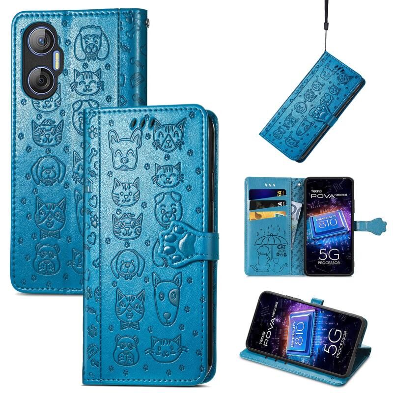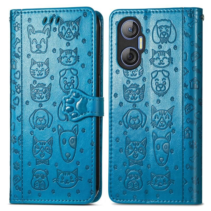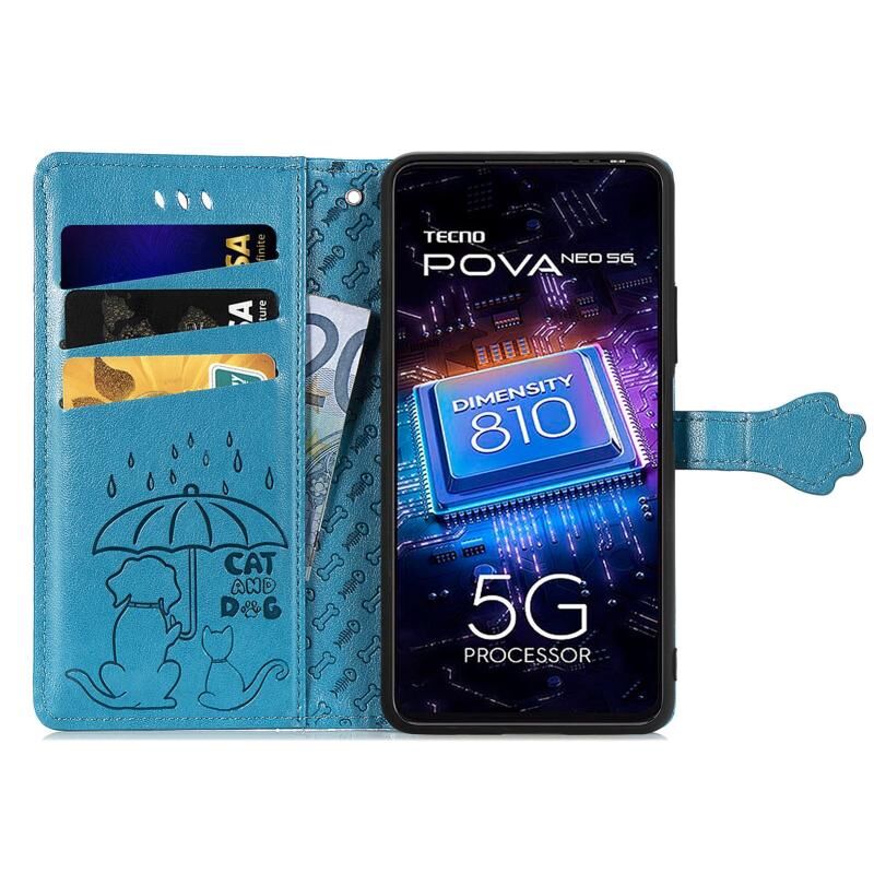 Θήκη τηλεφώνου από δέρμα με ανάγλυφο σχέδιο γάτας και σκύλου για Tecno Pova Neo 5G (Μωβ)
