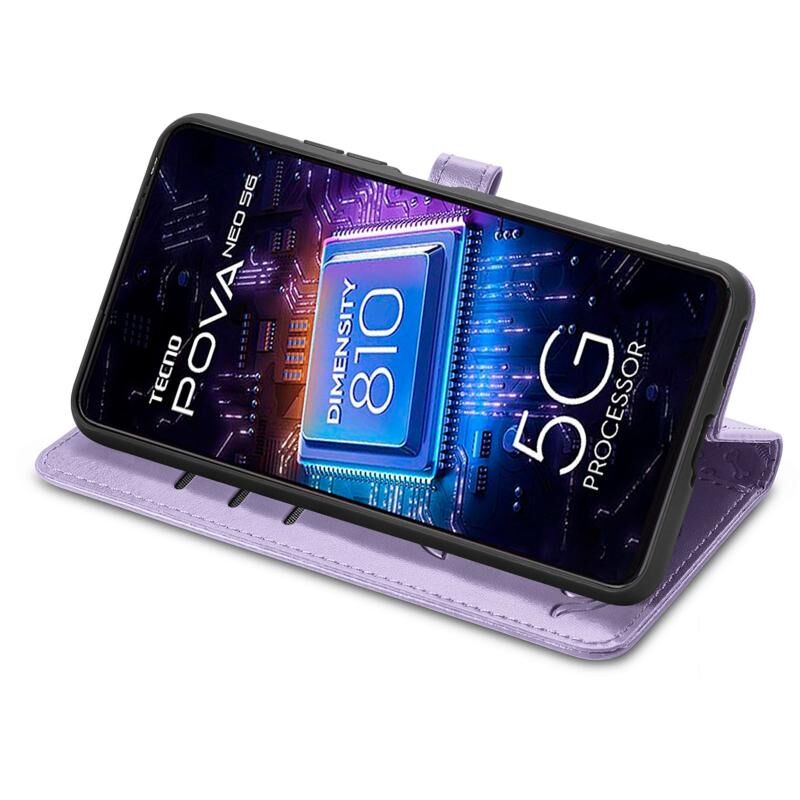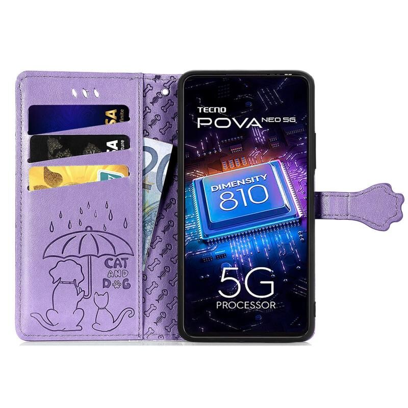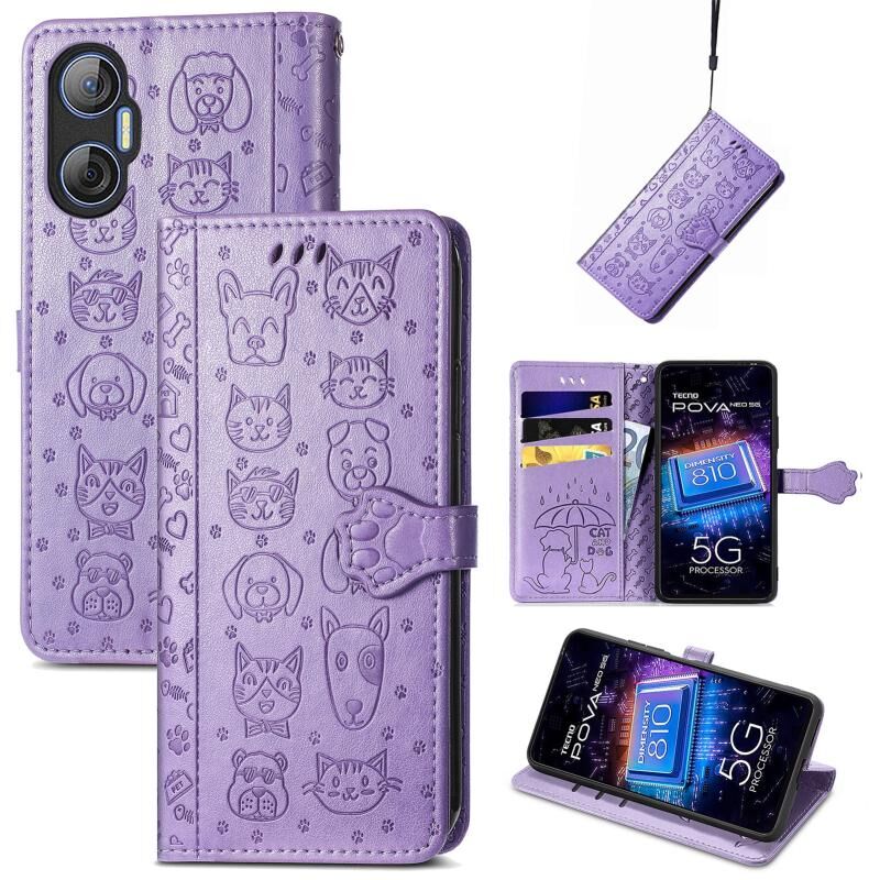 Θήκη τηλεφώνου από δέρμα με ανάγλυφο σχέδιο γάτας και σκύλου για Tecno Pova Neo 5G (Μωβ)