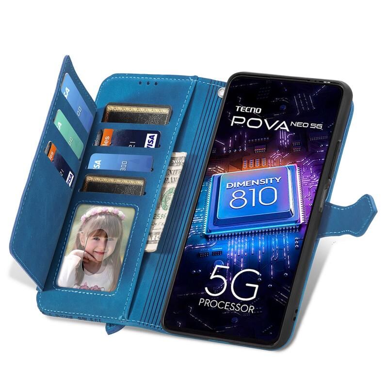 Για Tecno Pova Neo 5G ανάγλυφο λουλούδι φερμουάρ δερμάτινη θήκη τηλεφώνου (μπλε)