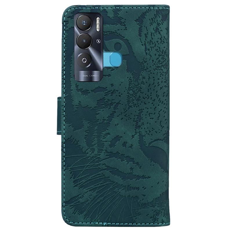 Θήκη τηλεφώνου Tecno Pova Neo LE6 με ανάγλυφο σχέδιο τίγρης, οριζόντια, δερμάτινη (πράσινο)