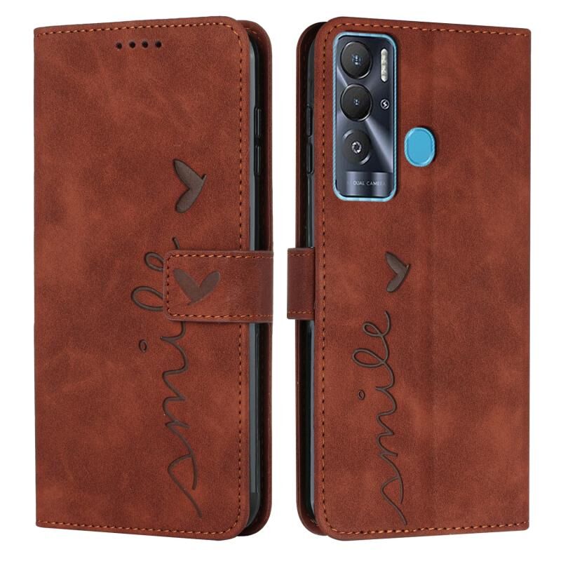 Για Tecno Pova Neo δέρμα αίσθηση καρδιά μοτίβο δερμάτινη θήκη τηλεφώνου (καφέ)