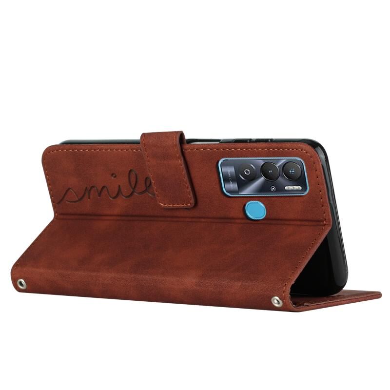 Για Tecno Pova Neo δέρμα αίσθηση καρδιά μοτίβο δερμάτινη θήκη τηλεφώνου με κορδόνι (καφέ)