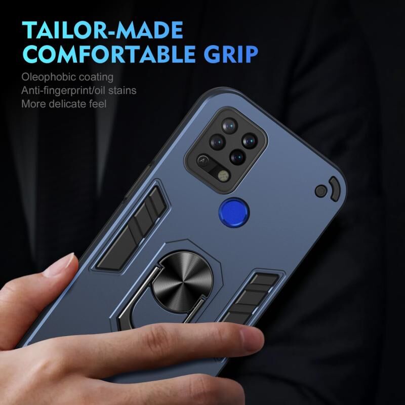 For Tecno Pova Shockproof Metal Ring Holder Phone Case(Blue)