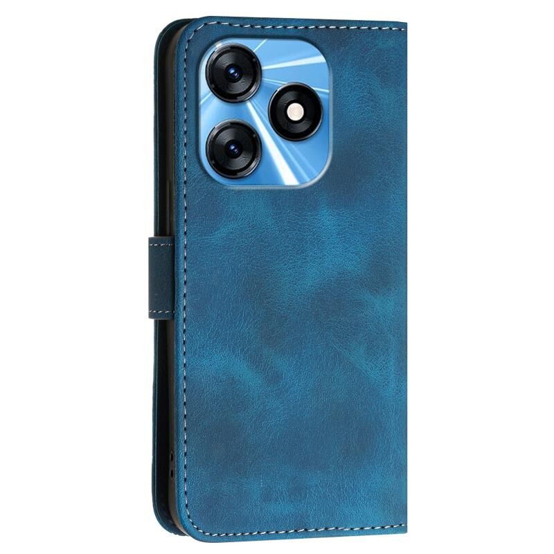 For Tecno Spark 10 4G Grid Butterfly Embossed Pattern Leather Phone Case with Lanyard(Dark Blue)