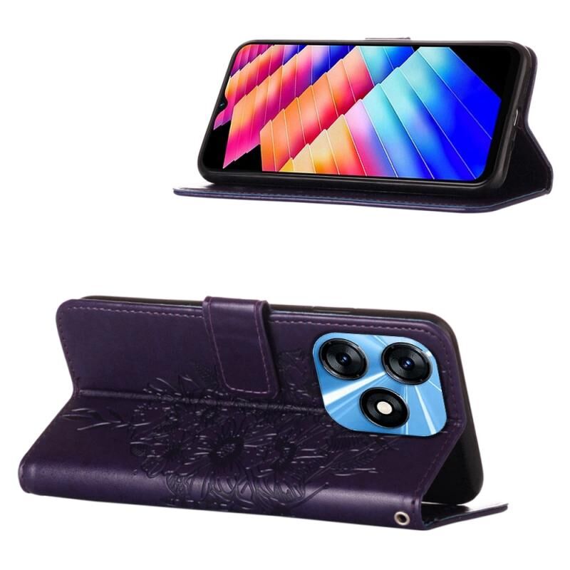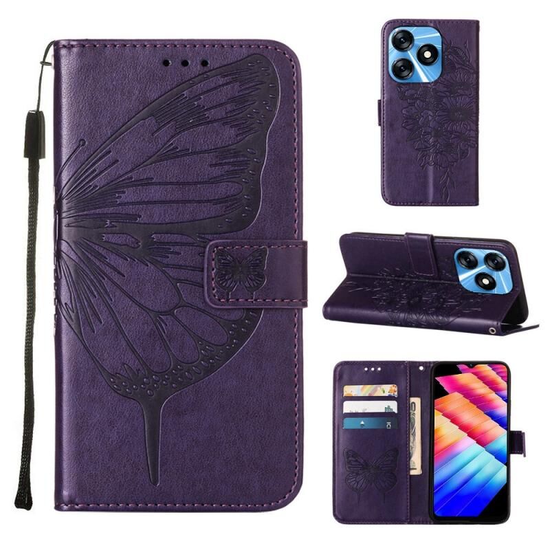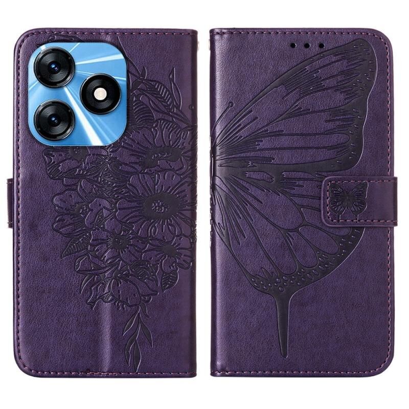 Θήκη τηλεφώνου από δέρμα με ανάγλυφο σχέδιο πεταλούδας για Tecno Spark 10 4G / K15K (Μαύρο)