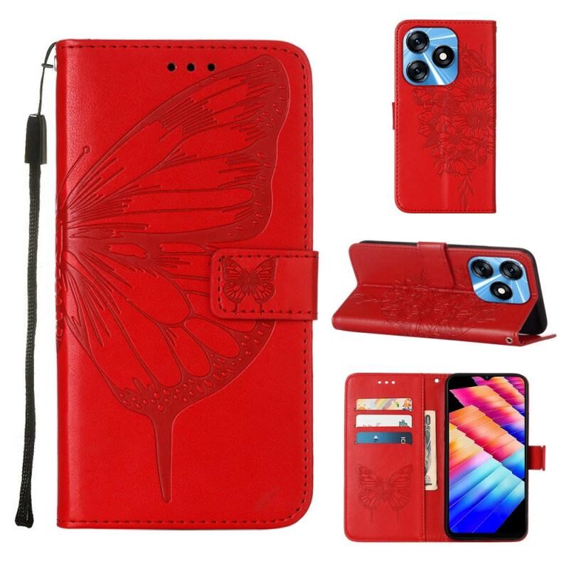 Θήκη τηλεφώνου από δέρμα με ανάγλυφο σχέδιο πεταλούδας για Tecno Spark 10 4G / K15K (Μαύρο)