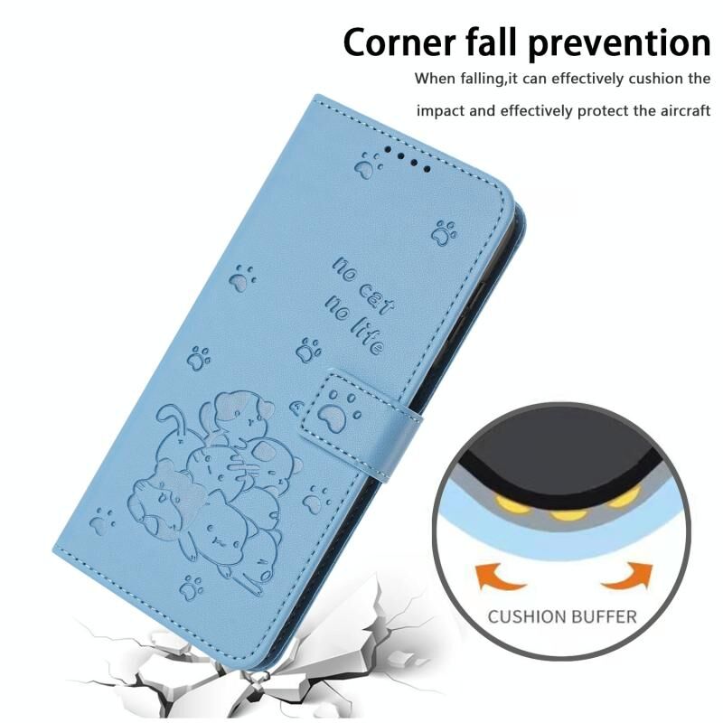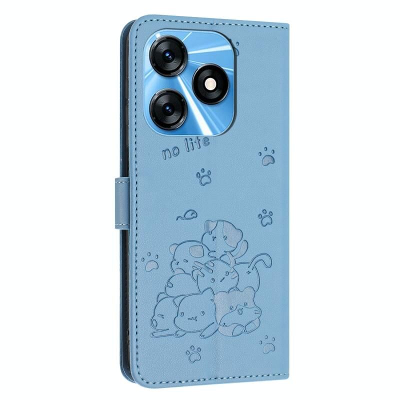 Θήκη δέρματος τηλεφώνου με ανάγλυφο γατάκι και λουρί για Tecno Spark 10 4G / Spark 10C (Μωβ)