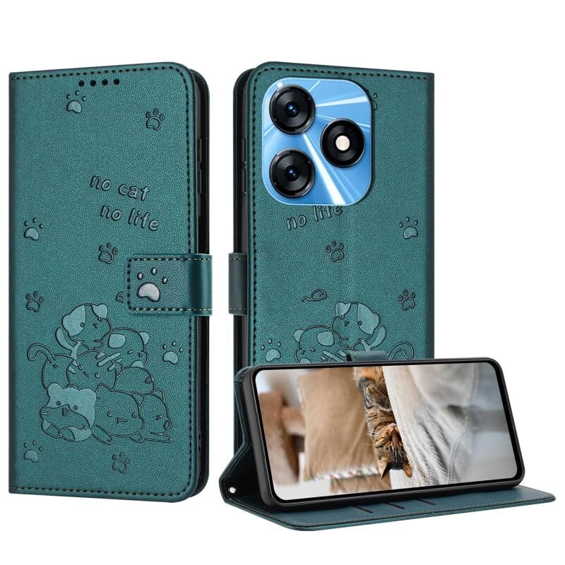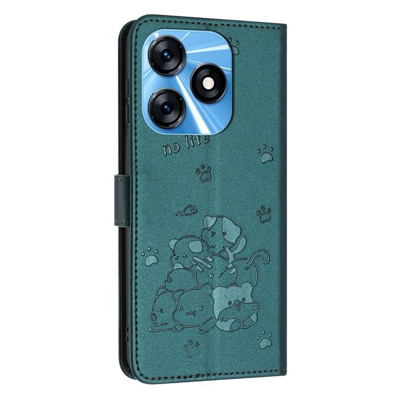 Θήκη δέρματος τηλεφώνου με ανάγλυφο γατάκι και λουρί για Tecno Spark 10 4G / Spark 10C (Μωβ)