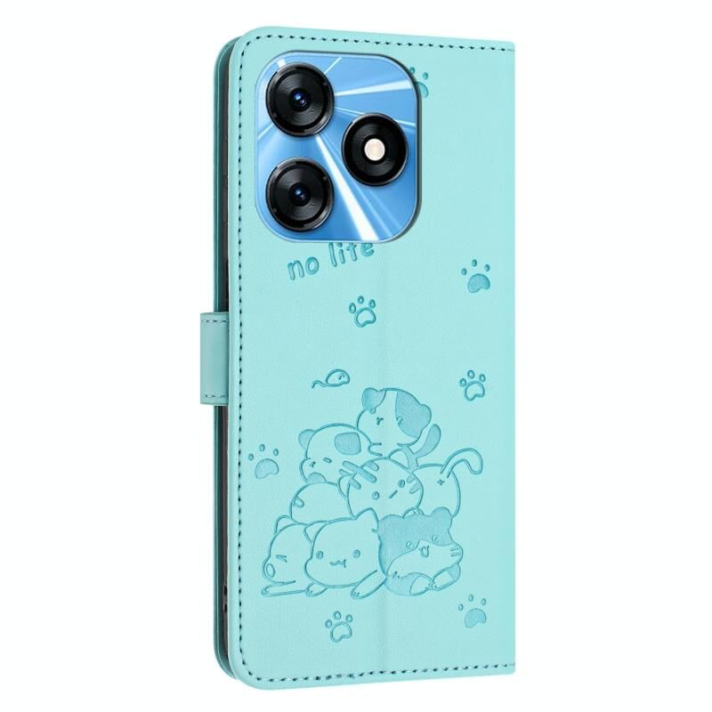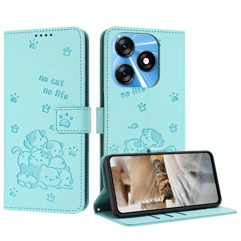 Θήκη δέρματος τηλεφώνου με ανάγλυφο γατάκι και λουρί για Tecno Spark 10 4G / Spark 10C (Μωβ)