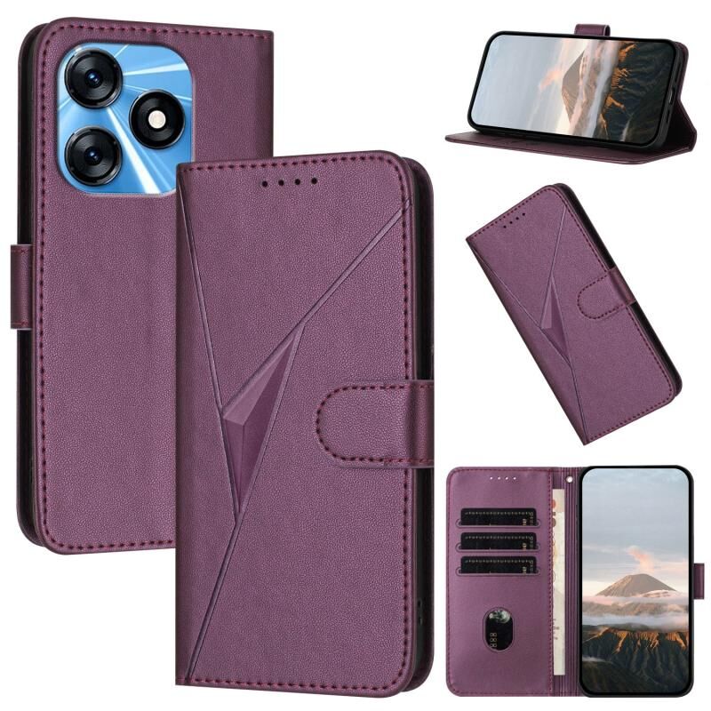 For Tecno Spark 10 4G Triangle Pattern Buckle Clasp Leather Phone Case(Dark Purple)