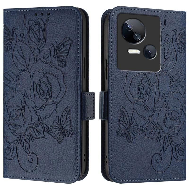 For Tecno Spark 10 5G Embossed Rose RFID Anti-theft Leather Phone Case(Dark Blue)