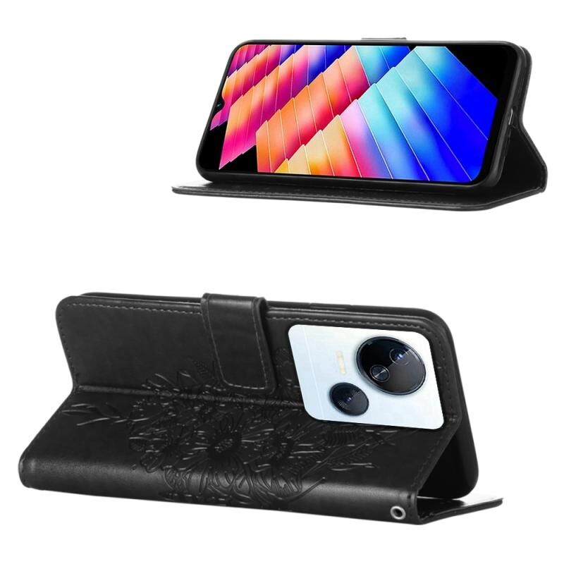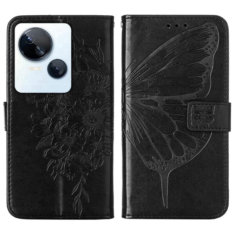 Θήκη τηλεφώνου από δέρμα με ανάγλυφο σχέδιο πεταλούδας για Tecno Spark 10 5G / K18 (Μαύρο)