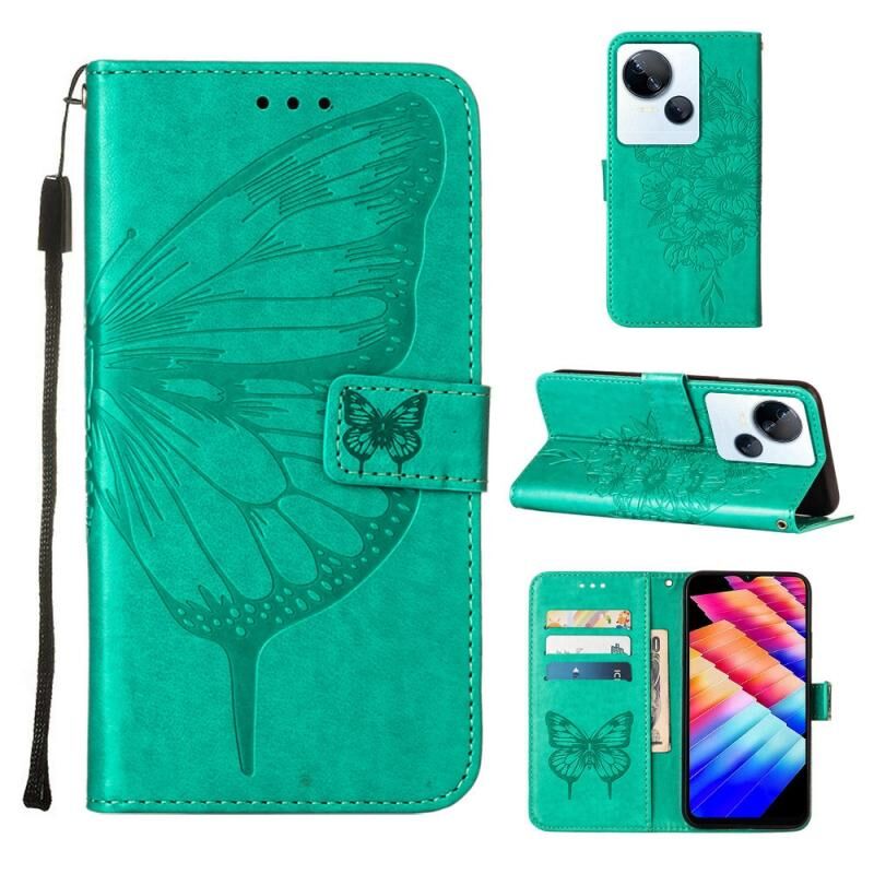 Θήκη τηλεφώνου από δέρμα με ανάγλυφο σχέδιο πεταλούδας για Tecno Spark 10 5G / K18 (Μαύρο)
