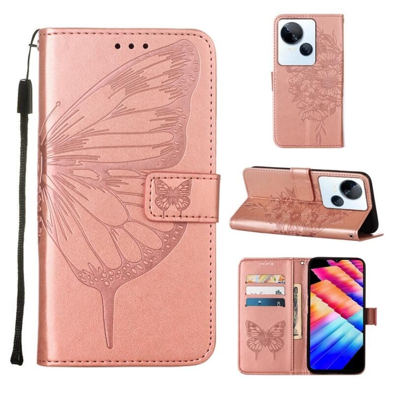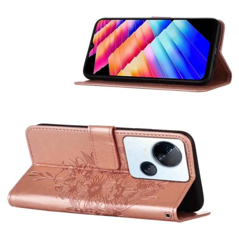 Θήκη τηλεφώνου από δέρμα με ανάγλυφο σχέδιο πεταλούδας για Tecno Spark 10 5G / K18 (Μαύρο)