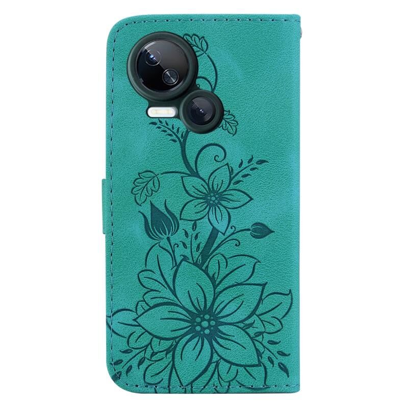 Θήκη τηλεφώνου από δέρμα με ανάγλυφο λουλουδιού Lily για Tecno Spark 10 5G (Πράσινο)