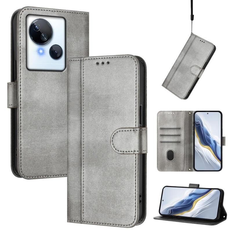 For Tecno Spark 10 5G Line Splicing Buckle Retro Leather Phone Case(Grey)