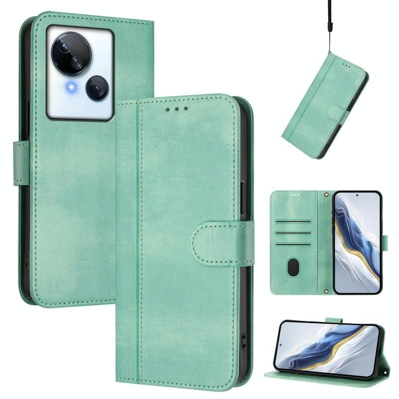 For Tecno Spark 10 5G Line Splicing Buckle Retro Leather Phone Case(Mint)