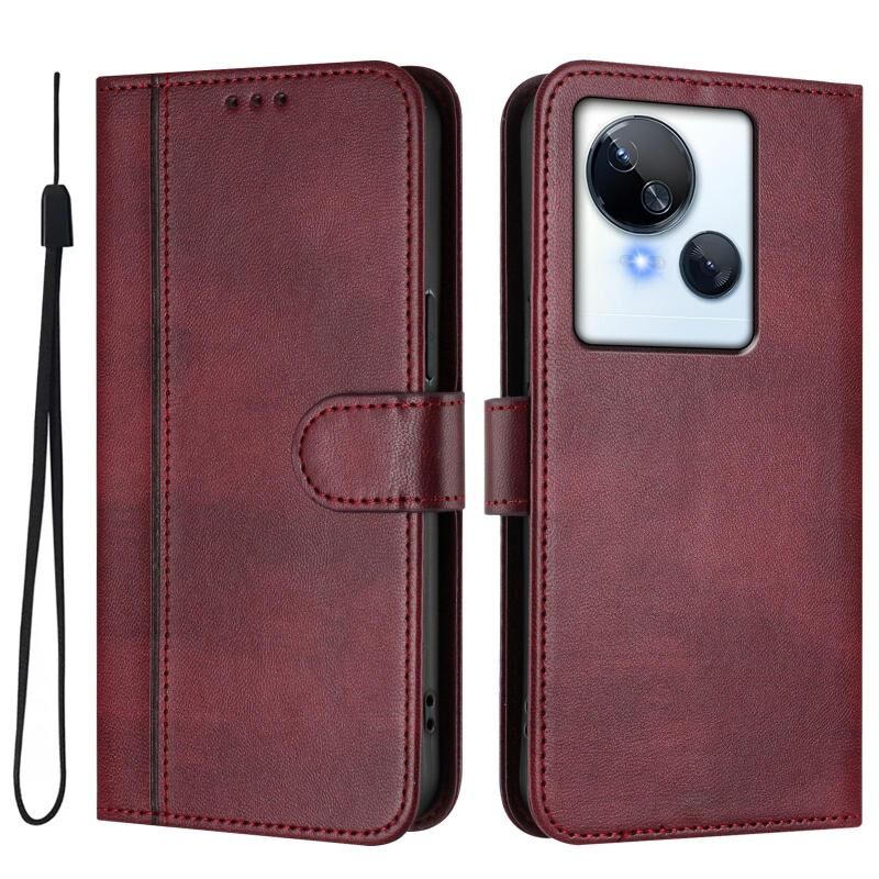 For Tecno Spark 10 5G Line Splicing Buckle Retro Leather Phone Case(Wine Red)