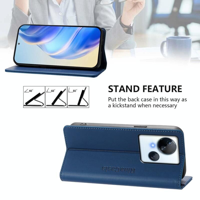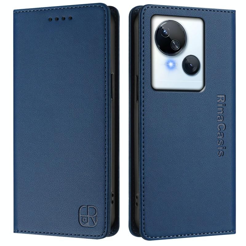 For Tecno Spark 10 5G RC01 Dual-Folded Magnetic Suction RFID Leather Phone Case(Dark Blue)