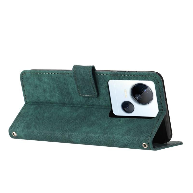 Για Tecno Spark 10 5G Skin Feel Stripe Pattern Δερμάτινη θήκη τηλεφώνου με κορδόνι (πράσινο)