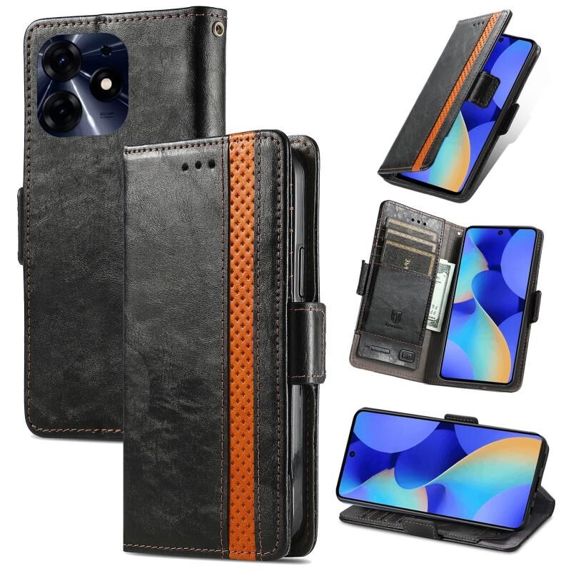 Για Tecno Spark 10 CaseNeo Splicing Διπλή μαγνητική πόρπη δερμάτινη θήκη τηλεφώνου (μαύρο)