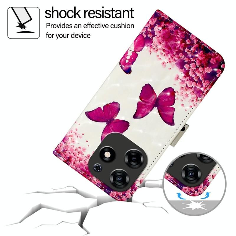 Θήκη τηλεφώνου από δέρμα με οριζόντιο άνοιγμα και τρισδιάστατη ζωγραφική για Tecno Spark 10 Pro (Ροζ Πεταλούδα)