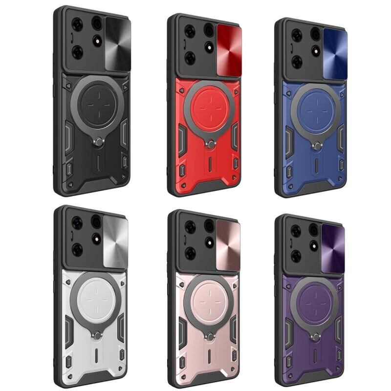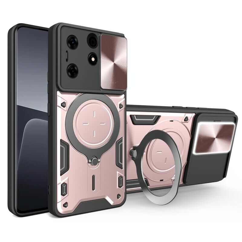 Θήκη τηλεφώνου για Tecno Spark 10 Pro 4G με υφή CD, ολισθαίνουσα προστασία κάμερας Camshield και μαγνητική βάση (Ροζ)
