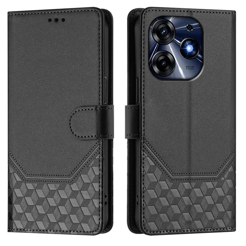 Για Tecno Spark 10 Pro 4G Honeycomb ανάγλυφη RFID δερμάτινη θήκη τηλεφώνου (Μαύρο)