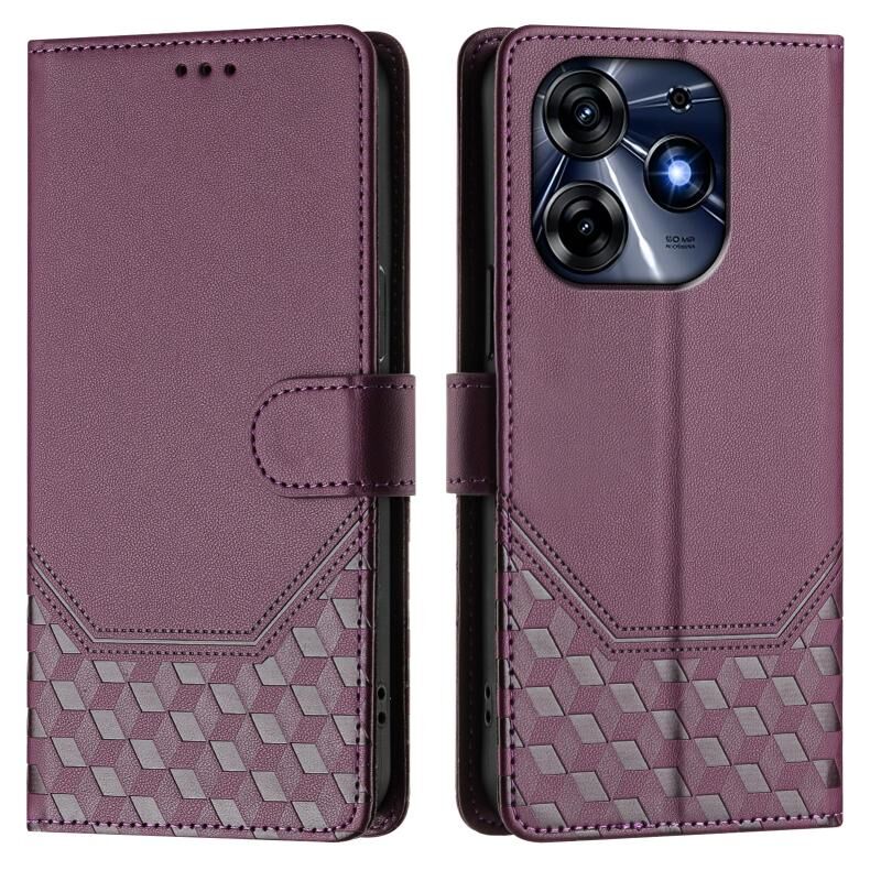 Για Tecno Spark 10 Pro 4G Honeycomb ανάγλυφη RFID δερμάτινη θήκη τηλεφώνου (Violet)