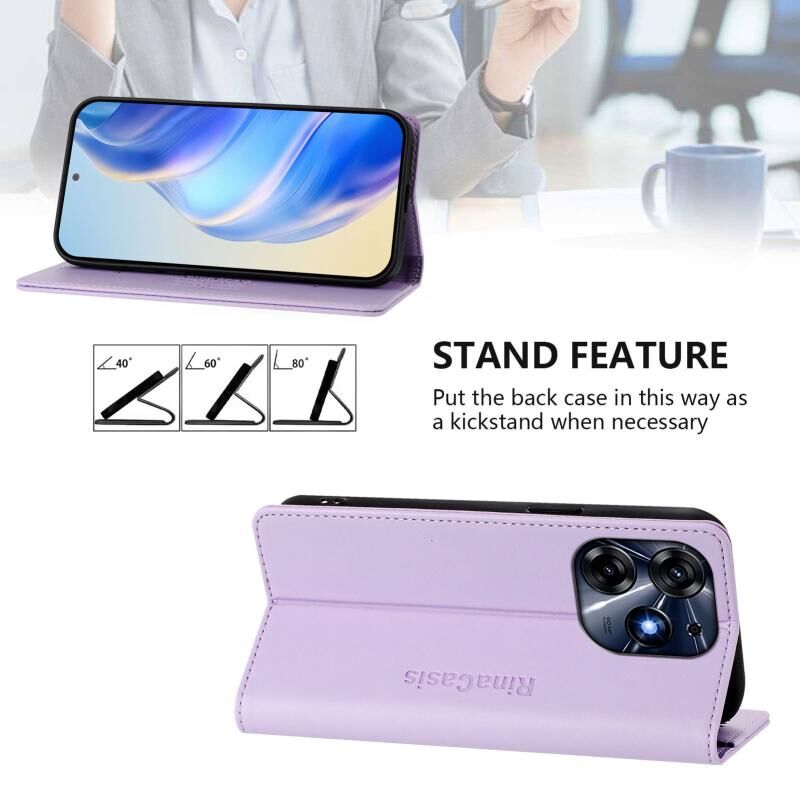 For Tecno Spark 10 Pro 5G / K17 4G RC01 Dual-Folded Magnetic Suction RFID Leather Phone Case(Light Purple)