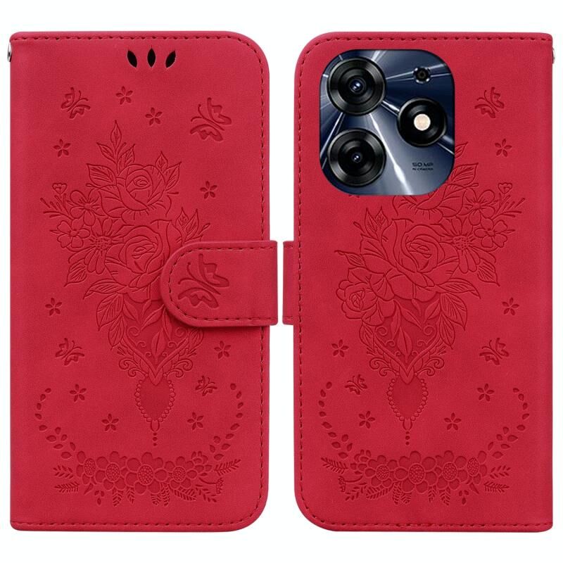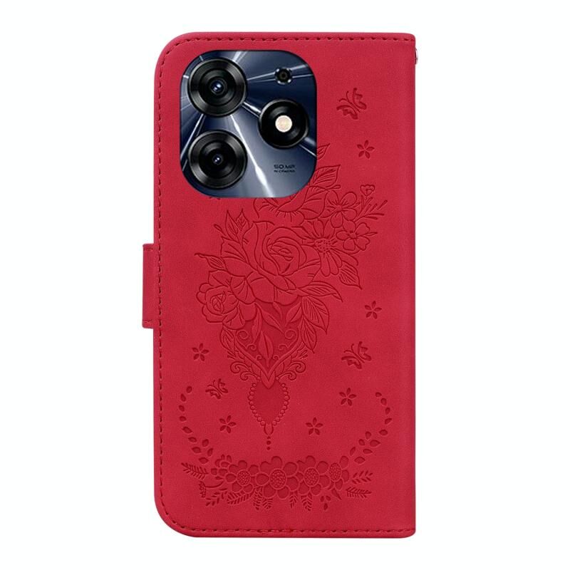 Για Tecno Spark 10 Pro Πεταλούδα Rose ανάγλυφη δερμάτινη θήκη τηλεφώνου (κόκκινο)