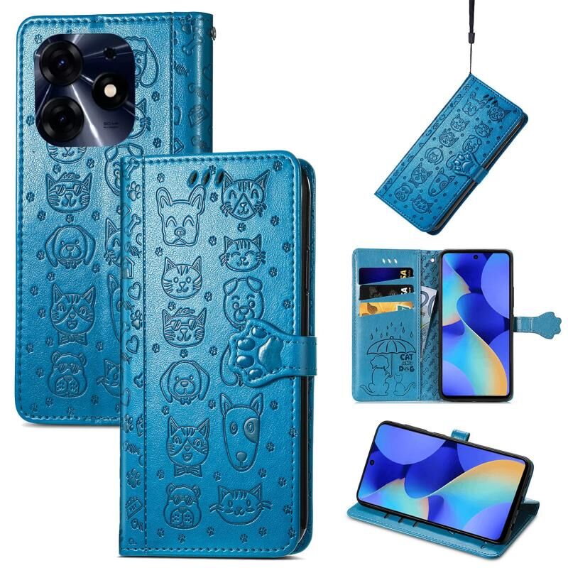 Θήκη τηλεφώνου από δέρμα με ανάγλυφο σχέδιο γάτας και σκύλου για Tecno Spark 10 Pro (Μπλε)