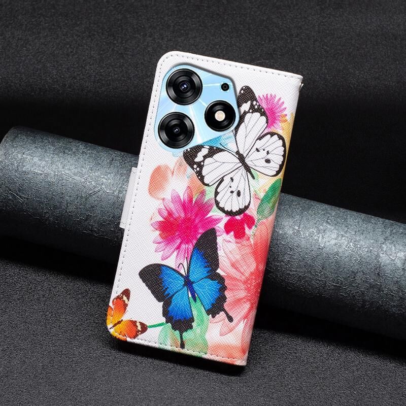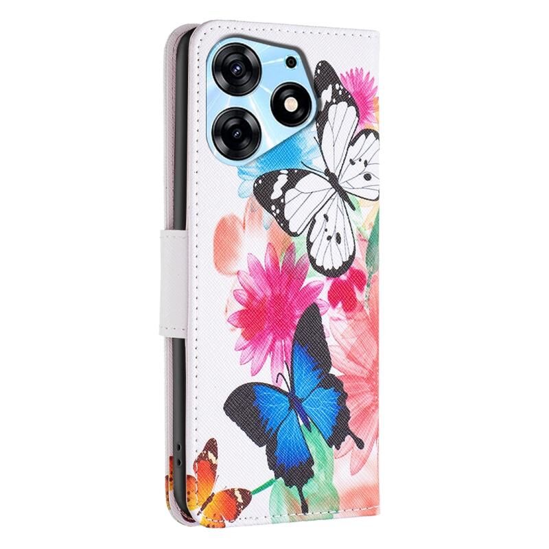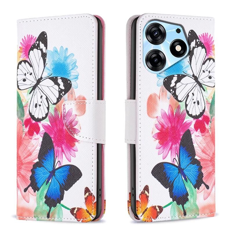 Θήκη τηλεφώνου από δέρμα με έγχρωμο σχέδιο (πεταλούδες) για Tecno Spark 10 Pro.