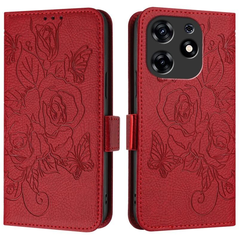 For Tecno Spark 10 Pro Embossed Rose RFID Anti-theft Leather Phone Case(Red)