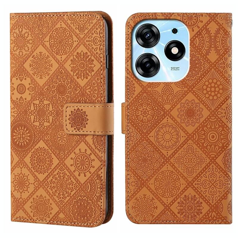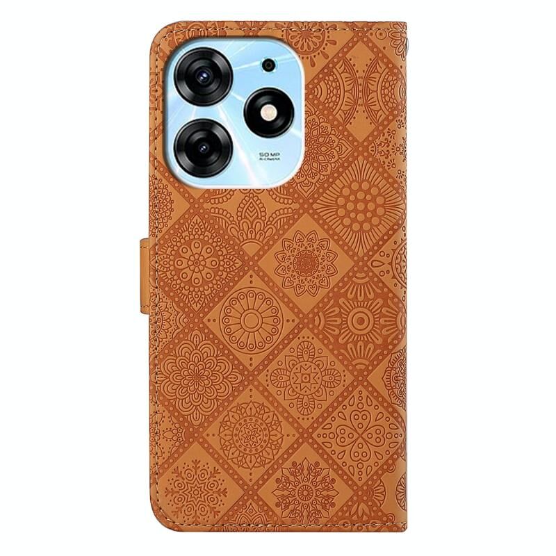 Θήκη τηλεφώνου από δέρμα με ανάγλυφο σχέδιο εθνοτικού στυλ για Tecno Spark 10 Pro (Καφέ)