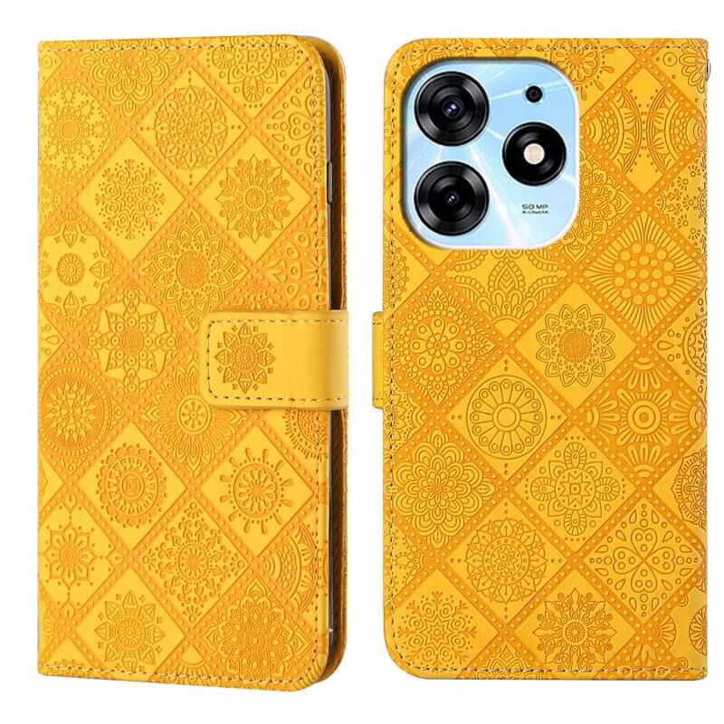 Θήκη τηλεφώνου από δέρμα με ανάγλυφο σχέδιο εθνοτικού στυλ για Tecno Spark 10 Pro (Καφέ)