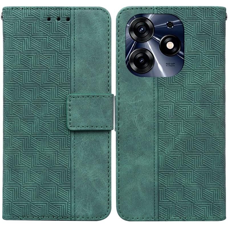 Για Tecno Spark 10 Pro Γεωμετρική ανάγλυφη δερμάτινη θήκη τηλεφώνου (πράσινο)