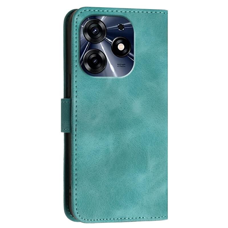 For Tecno Spark 10 Pro Grid Butterfly Embossed Pattern Leather Phone Case with Lanyard(Light Blue)