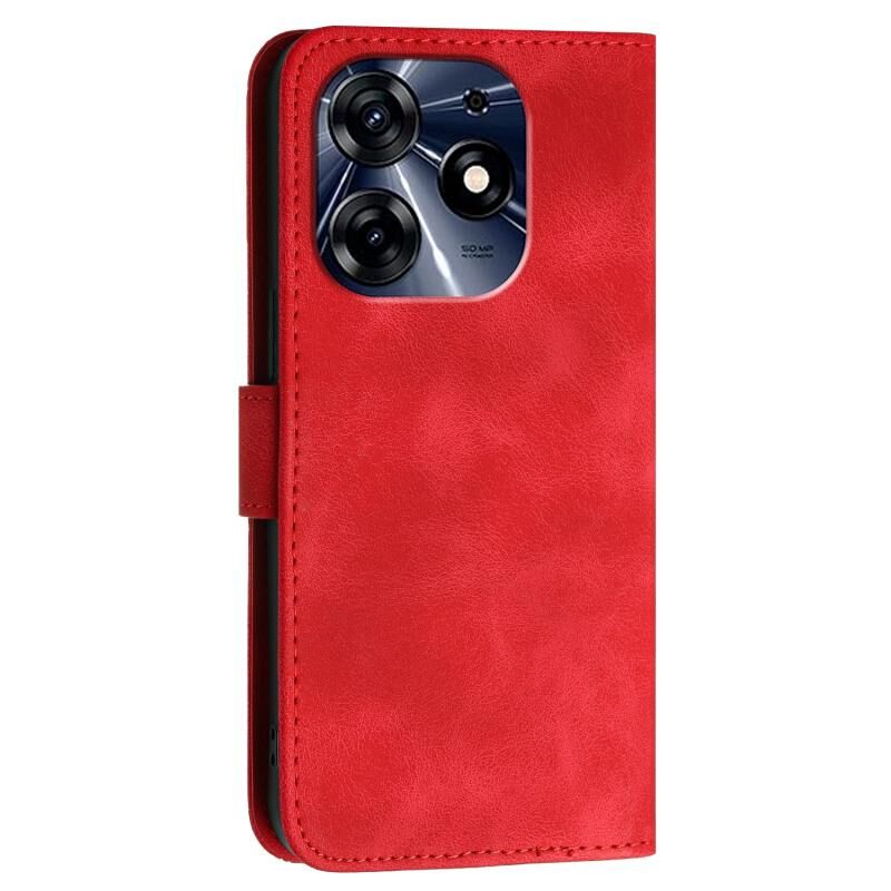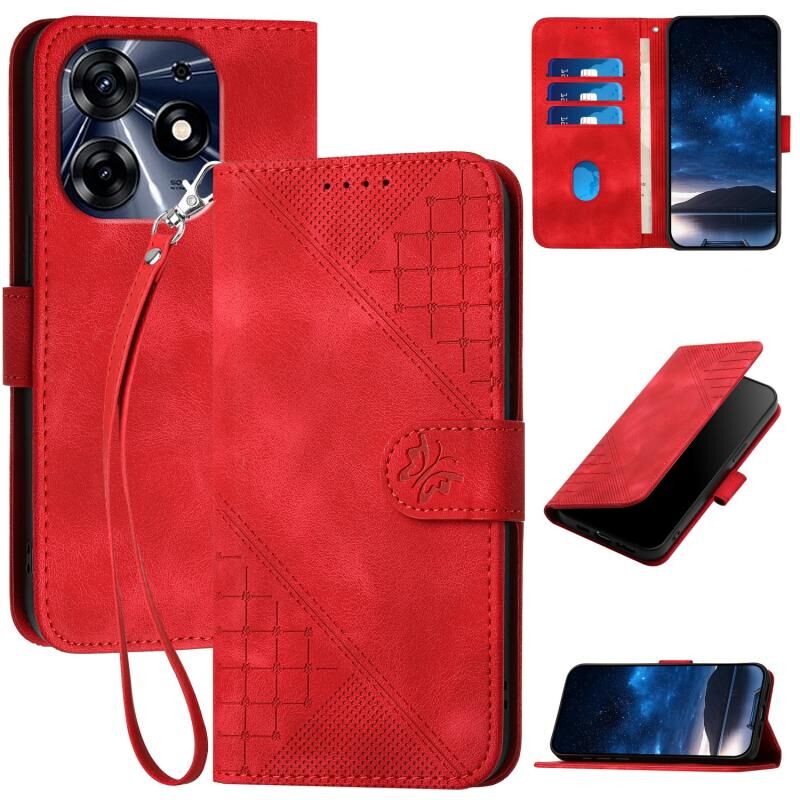 For Tecno Spark 10 Pro Grid Butterfly Embossed Pattern Leather Phone Case with Lanyard(Red)